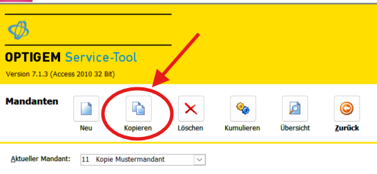 Die Mandantenkopie machen Sie im OPTIGEM Service-Tool (schauen Sie im Türchen 11), über die Schaltfläche „Mandant“, wo Sie den Button „Kopieren“ anklicken.
