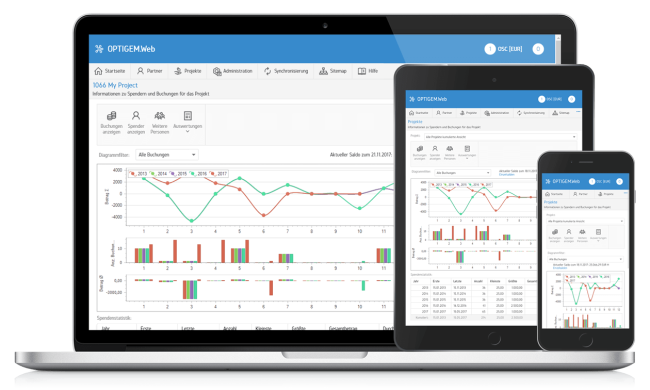 Das Projektmodul in OPTIGEM WEB gibt Verantwortlichen und anderen Mitarbeitenden Einblick in den Finanzstatus eines oder mehrerer Projekte. Spendeneingänge, bereits getätigte Ausgaben, Budgets und weitere Buchungen lassen sich mit dem Zusatzmodul übersichtlich verfolgen. Der direkte Dank für eingegangene Spenden oder die Information per E-Mail über aktuelle Ereignisse wird so wesentlich erleichtert. Ein umfangreicher Datenaustausch zwischen der Zentrale und den Projektmitarbeitenden ist dann nicht erforderlich. Wer auf Informationen zu eigenen Projekten zugreifen und sie bearbeiten darf, kann über die Zugriffsverwaltung bestimmt werden. Und das, ob Ihre Mitarbeitenden in der Zentrale, zu Hause oder im Ausland tätig sind.
